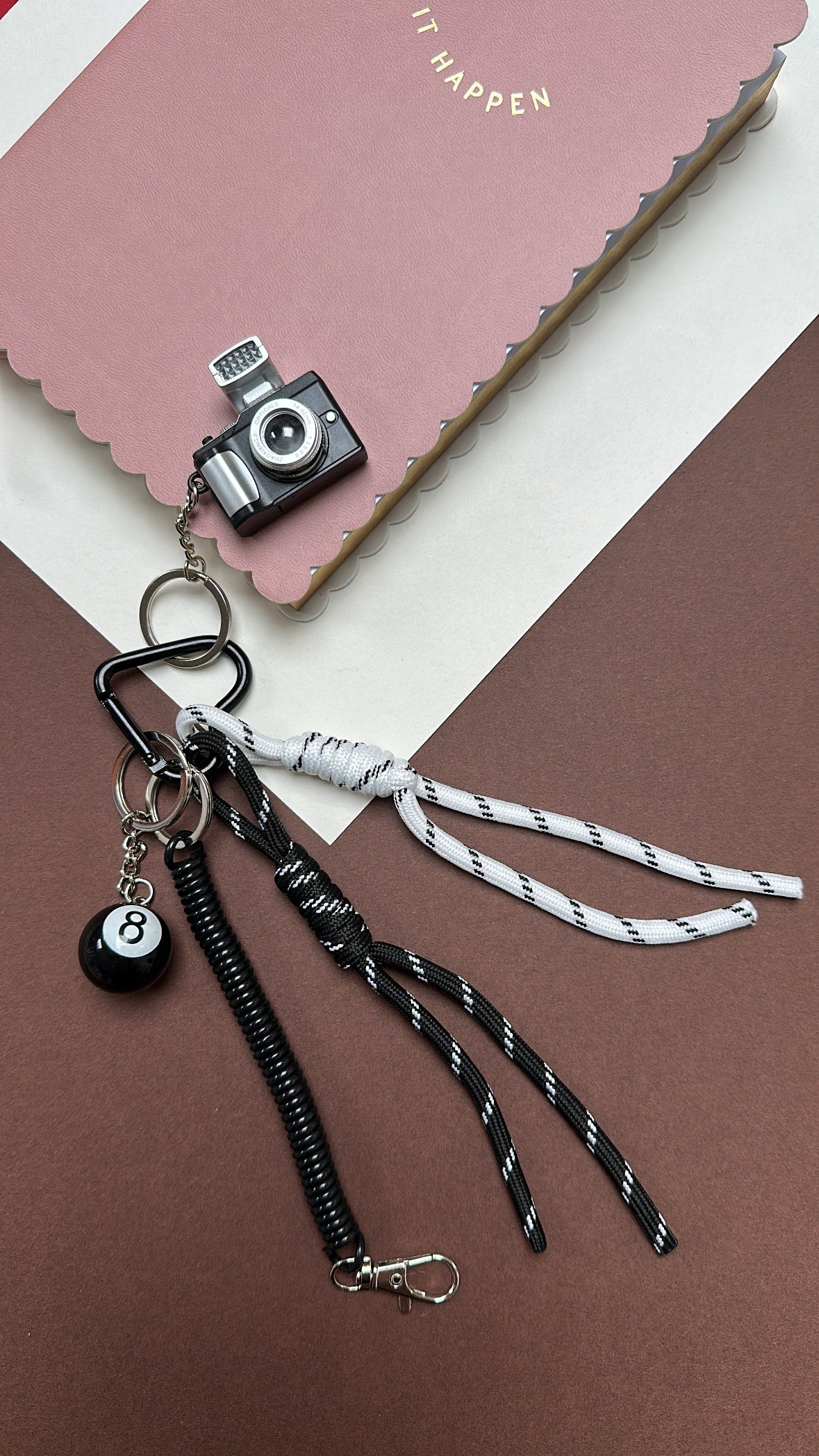 Geef je tas of camera een stoere en stijlvolle upgrade met deze geweven koord hanger. De zwarte 8-ball biljart bedel zorgt voor een edgy touch, terwijl het stevige koord het accessoire praktisch en veelzijdig maakt. Perfect om te gebruiken als tasbedel, camera accessoire of sleutelhanger.