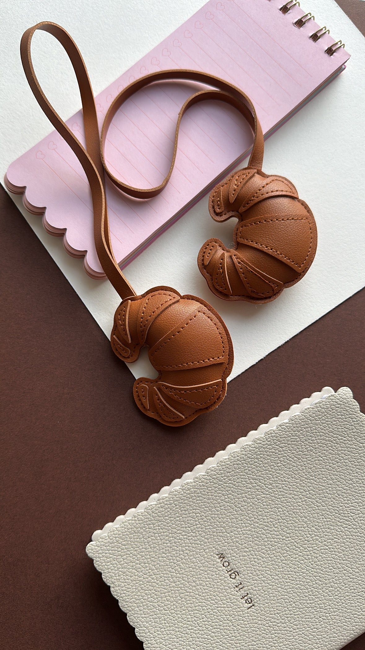 Geef je tas of sleutels een zoete en trendy touch met deze bruine croissant bag charm. Het schattige design maakt dit accessoire perfect voor een girly en opvallende look.